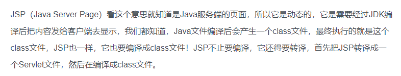 HTML(Hypertext Markup Language)文本标记语言,它是静态页面,和JavaScript一样解释性语言,为什么说是解释性语言呢?因为,只要你有一个浏览器那么它就可以正常显示出来,而不需要指定的编译工具,只需在TXT文档中写上HTML标记就OK。 JSP(Java Server Page)看这个意思就知道是Java服务端的页面,所以它是动态的,它是需要经过JDK编译后把内容发给客户端去显示,我们都知道,Java文件编译后会产生一个class文件,最终执行的就是这个class文件,JSP也一样,它也要编译成class文件!JSP不止要编译,它还得要转译,首先把JSP转译成一个Servlet文件,然后在编译成class文件。 JSP和HTML的区别 运行机制不同 HTML是运行在客户端,是一种标记语言,由浏览器解释执行;JSP运行在服务器端,需要web容器提供运行环境。 HTML是客户端技术,提供了一种描述文档中基于文本的信息结构的方法。JSP是服务器端技术,提供了一个动态接口,用于不断更改数据并动态调用服务器操作。 采用的技术不同 HTML是客户端技术,提供了一种描述文档中基于文本的信息结构的方法。JSP是服务器端技术,提供了一个动态接口,用于不断更改数据并动态调用服务器操作。 网页上的区别: HTML生成静态网页;JSP生成动态网页。 JSP被用作动态页面的制作,而HTML一般用作静态页面的制作。动态页面的内容一般都是依靠服务器端的程序来生成的,不同人、不同时候访问页面,显示的内容都可能不同。
