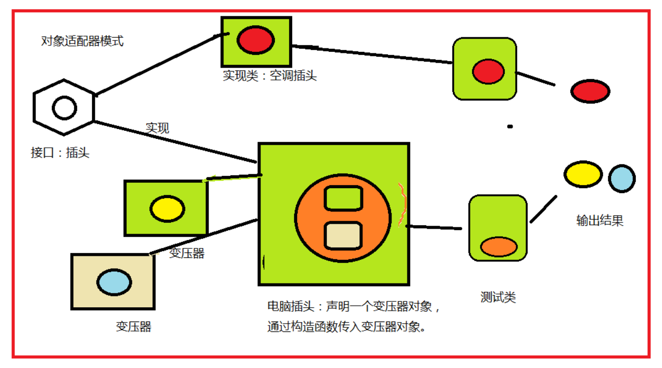 - 实现方式:创建一个新类(适配器类),实现目标接口,并通过引用包含一个被适配者的对象。