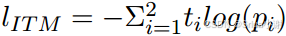 这个辅助任务也很简单,就是50%的概率随机替换文本-图像对中的图像数据,如果被替换了,那么文本和图像就是不匹配的,如果没有替换,文本和图像就是匹配的,这时可以让模型去预测,文本和图像当前到底匹不匹配,从而转化成一个二分类问题。