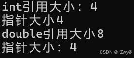 cout << "double引用大小"<<sizeof(ref2) << endl;