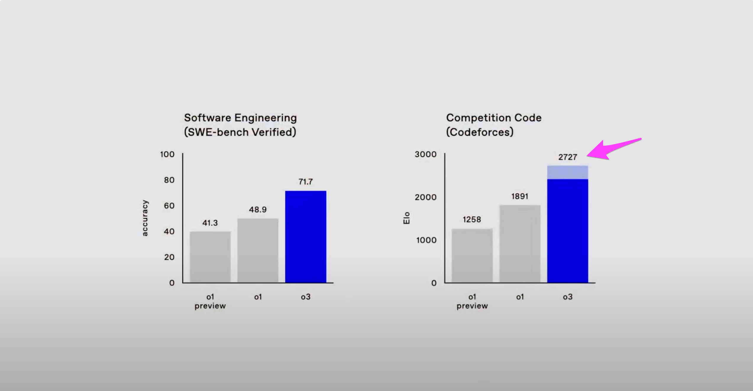 两天前,OpenAI的奥特曼通过 Youtube 发布了即将推出的 OpenAI o3。在 Codeforces 编程比赛中,o3 获得了 2727 分的高分,远超 o1 的 1891 分。