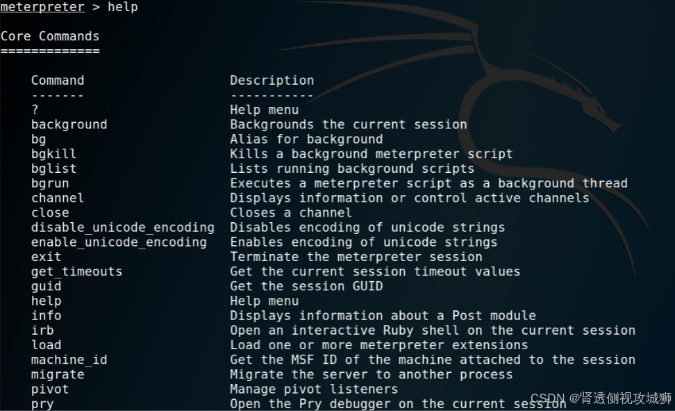 meterpreter > exit #如果不想使用了,就退出,断开会话meterpreter > help