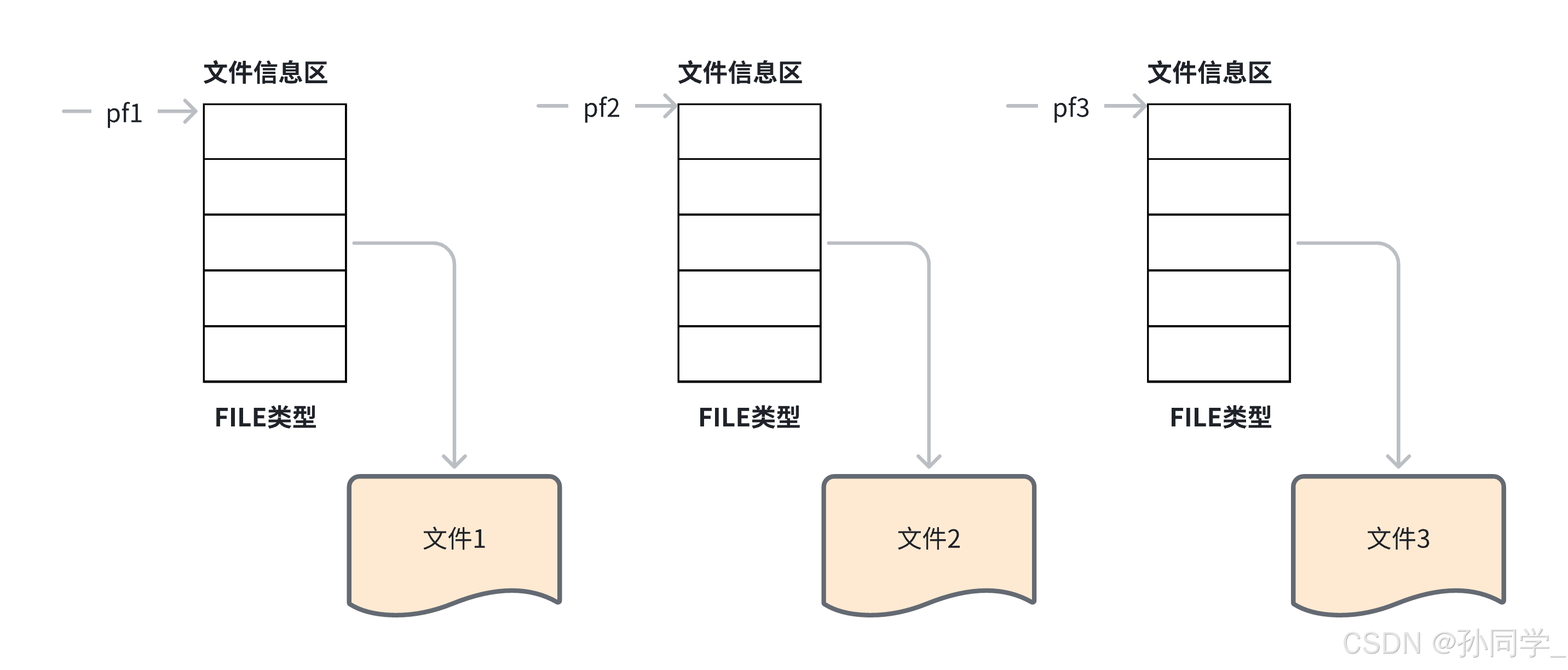 FILE* pf; //⽂件指针变量定义的pf是⼀个指向FILE类型数据的指针变量。可以使pf指向某个文件的文件信息区(是一个结构体变量)。通过该文件信息区中的信息就能够访问该文件。也就是说,通过文件指针变量能够间接找到与它关联的文件。