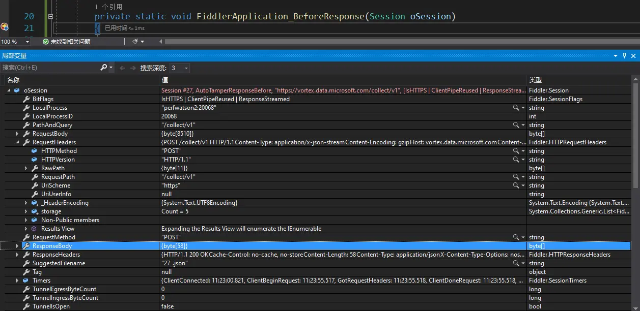 private static void FiddlerApplication_BeforeResponse(Session oSession){}