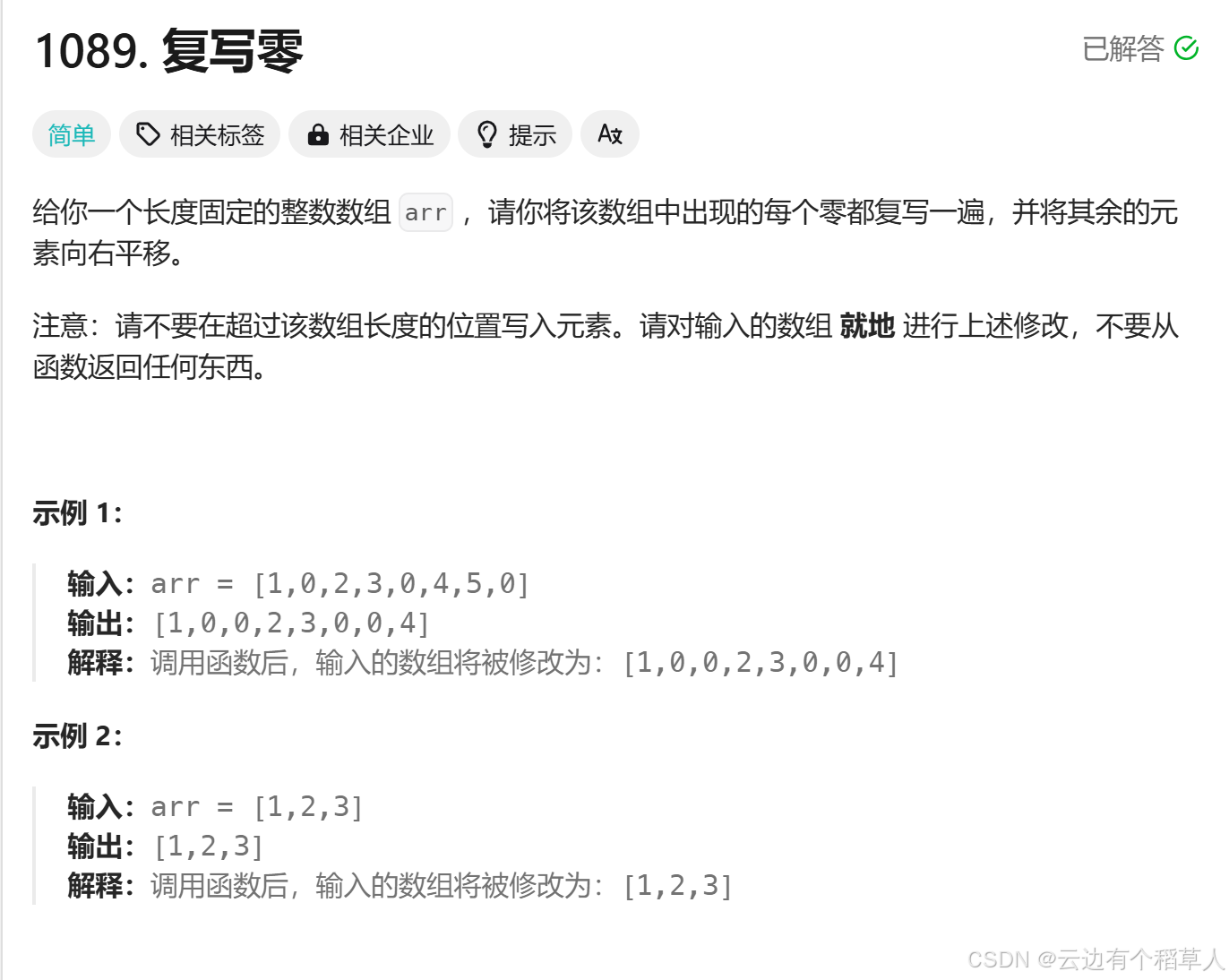 1.【1089. 复写零 - 力扣(LeetCode)】