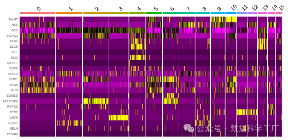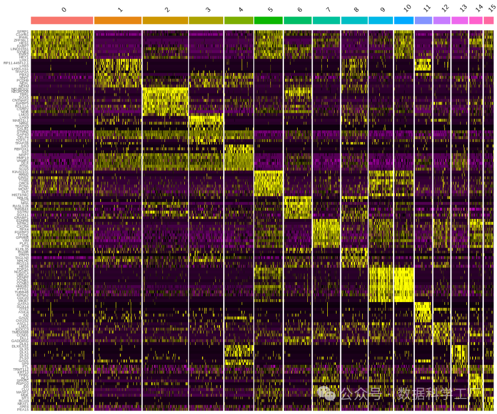 无论选择哪种方法,最终鉴定出的主要聚类标记基因都可以通过绘制热图来直观展示。