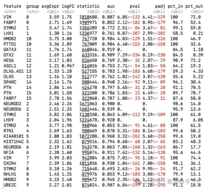 presto 的输出结果与 Seurat 的原生方法类似,但提供了更多的统计指标。