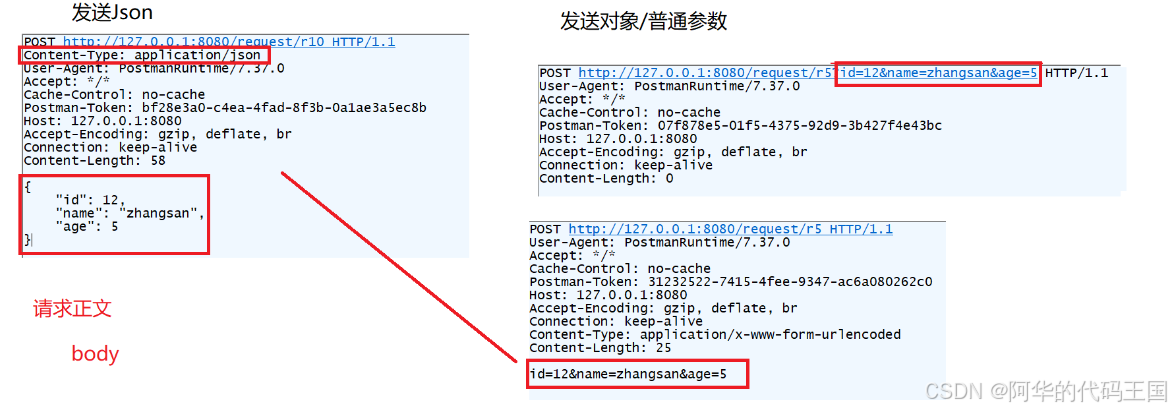 因为一个json对象是不能分割的所以左边的这种发送方式不可行