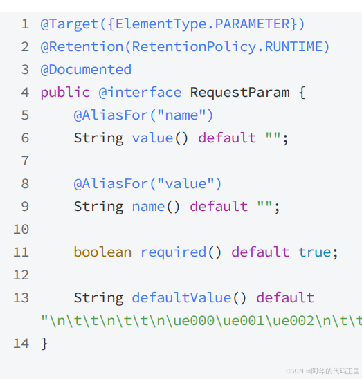 可以看到 required 的默认值为true, 表⽰含义就是: 该注解修饰的参数默认为必传