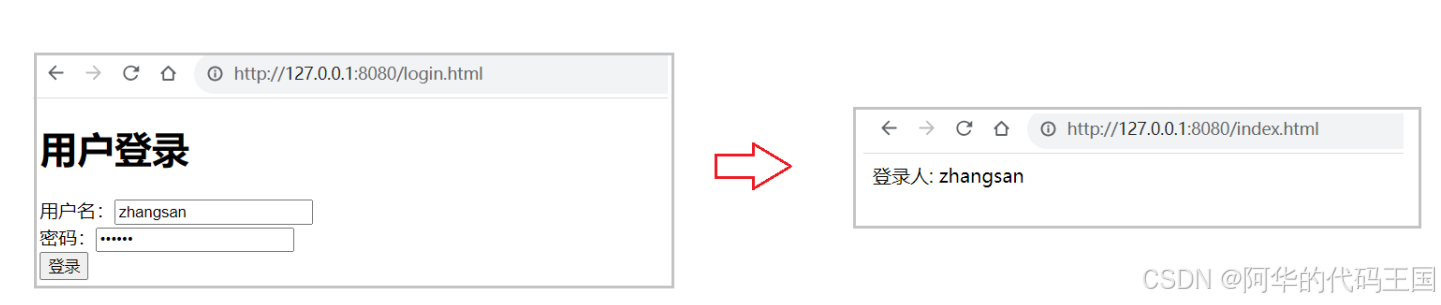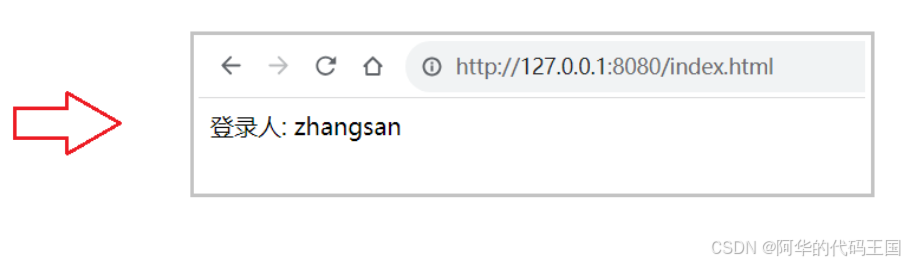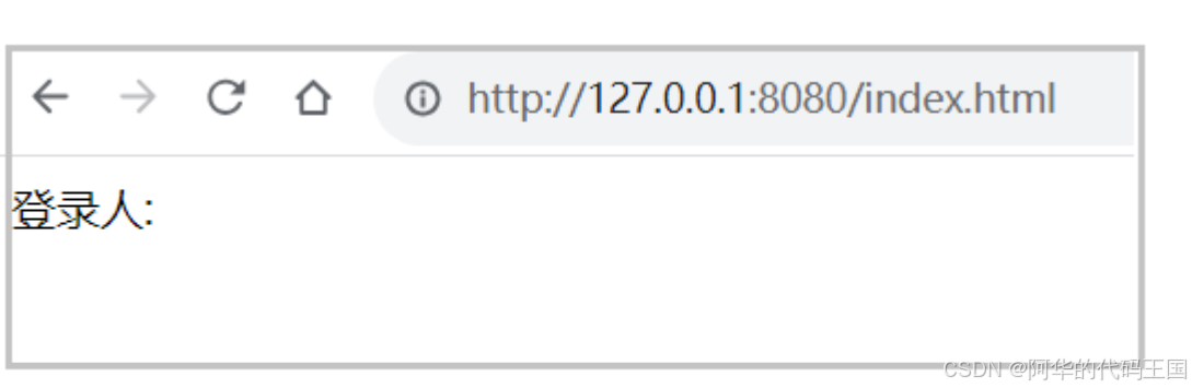 多次刷新http://127.0.0.1:8080/index.html发现依然可以获取到登录⽤⼾ 如果重启服务器,则登录⼈显⽰:空