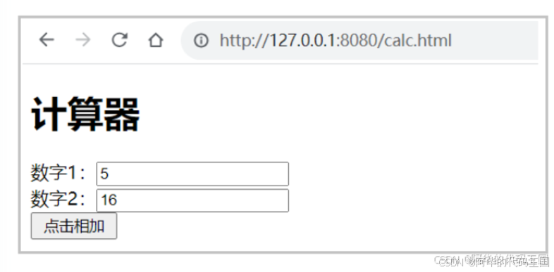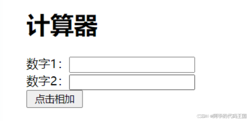 输⼊两个整数,点击"点击相加"按钮,显⽰计算结果