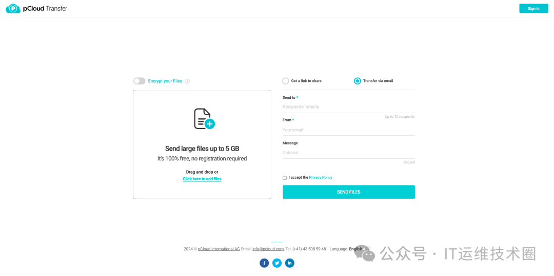 - 打开 pCloud Transfer(https://transfer.pcloud.com/)。