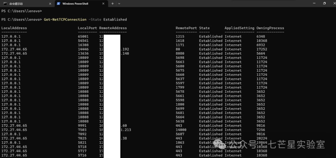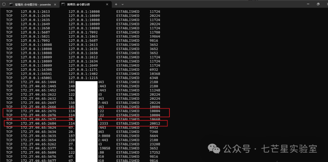 查看网络连接状态netstat -ano | find "ESTABLISHED",后面是pid