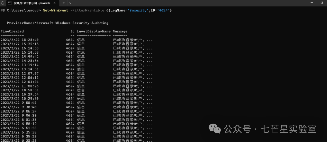 PowerShell Get-WinEvent命令