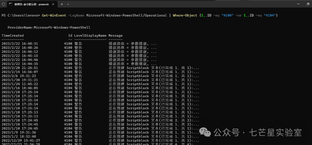 powershell日志中4104和4100事件: