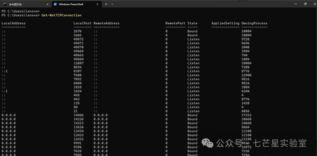Get-NetTCPConnection