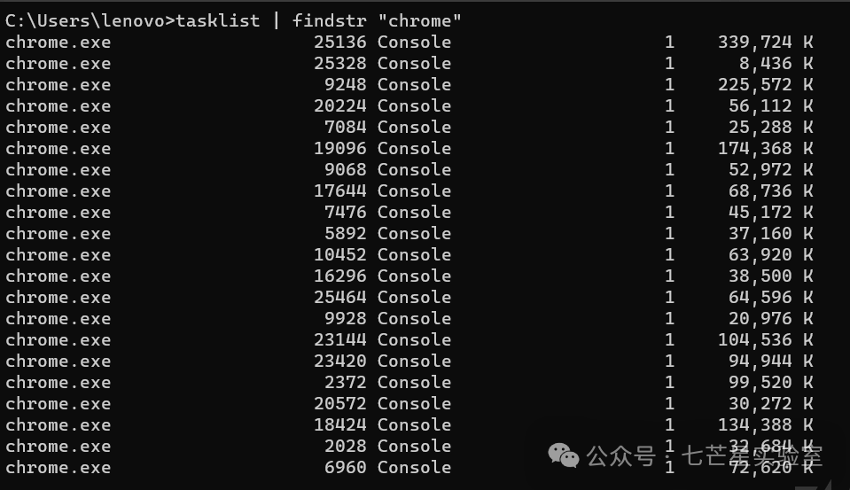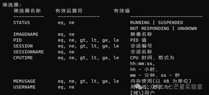 排查进程信息命令 列出所有进程:tasklist ,可以加/svc