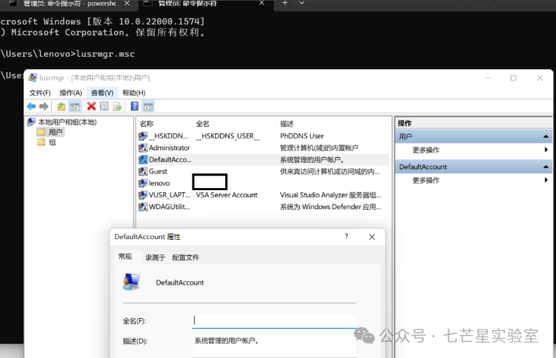 lusrmgr.msc打开本地用户组查看,用户名后面如果有$是隐藏用户