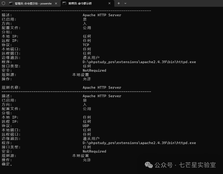 Apache的详细入站规则信息