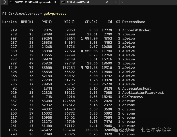 powershell下的get-process
