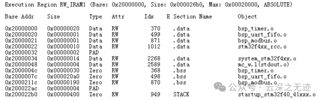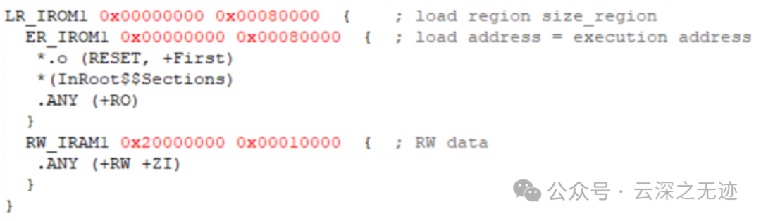 RW_IRAM1就是【运行域】,是RW+ZI的运行域,这里指向的是片内SRAM的地址。