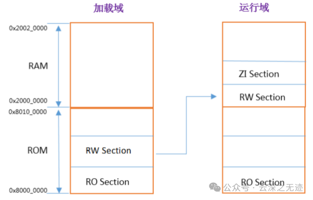 简单的说,加载域就是程序在 Flash 中的实际存储,而运行域是芯片上电后的运行状态。
