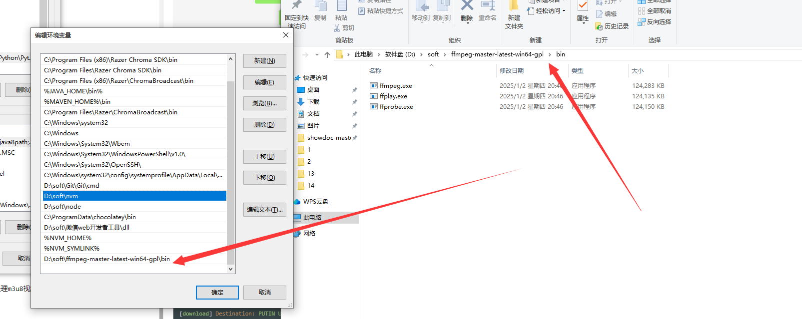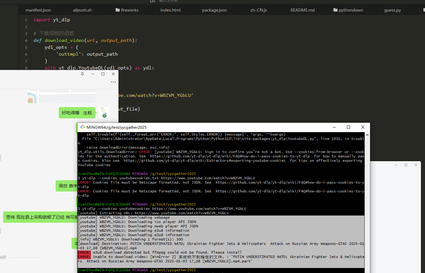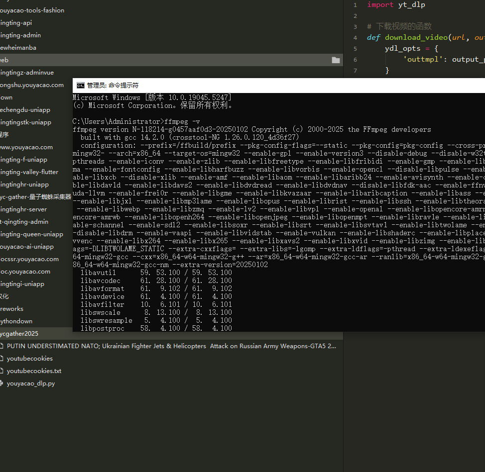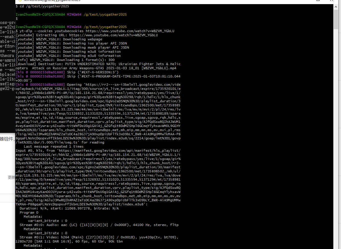 rs Attack on Russian Army Weapons-GTA5 2025-01-03 17_08 [WBZVM_YGbLU].mp4.part'继续报错,根据报错我们是因为m3u8 download detected but ffmpeg could not be found. Please install意思是没有ffmep来处理m3u8视频,因此下载出错