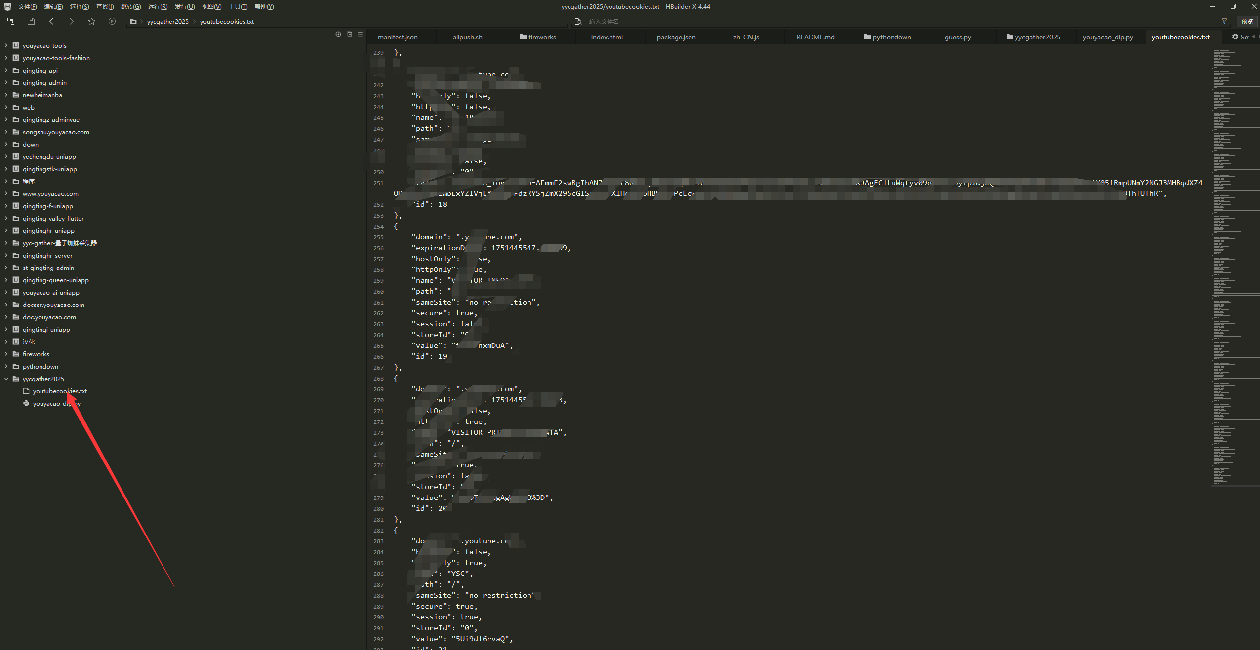 保存 Cookies:将导出的 Cookies 保存到一个文件中,例如 youtubecookies.txt。