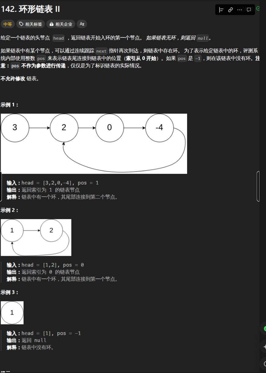 如果某个节点插入失败的话,那么就说明这个节点在set中已经是存在了的,那么我们直接阿静这个节点返回,这个节点就是我们所需要的环形链表的入环的第一个节点