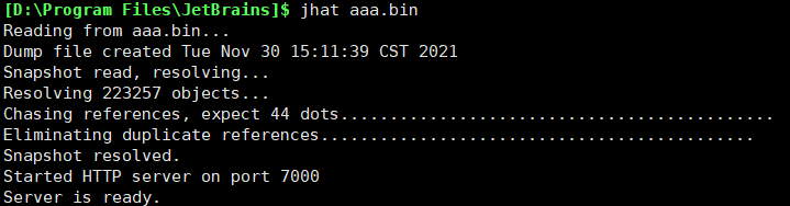 通过上述例子我们对 jmap 有了更深的了解,下面我们继续看虚拟机堆转储快照分析工具——jhat。
