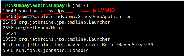 jps [option] [hostid]我们来看一下 jps -l 这个例子,前一列是查询到的 LVMID,后一列是主类的全名。