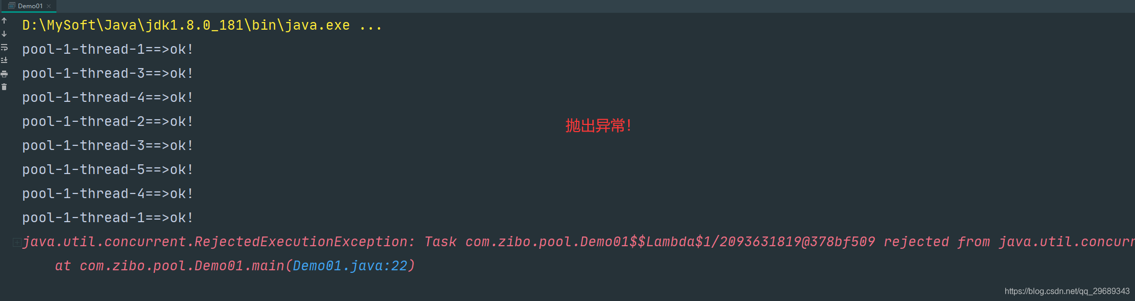 new ThreadPoolExecutor.AbortPolicy()//所有线程都被占用了,阻塞队列也满了,还有线程进来,就不再处理,并抛出异常