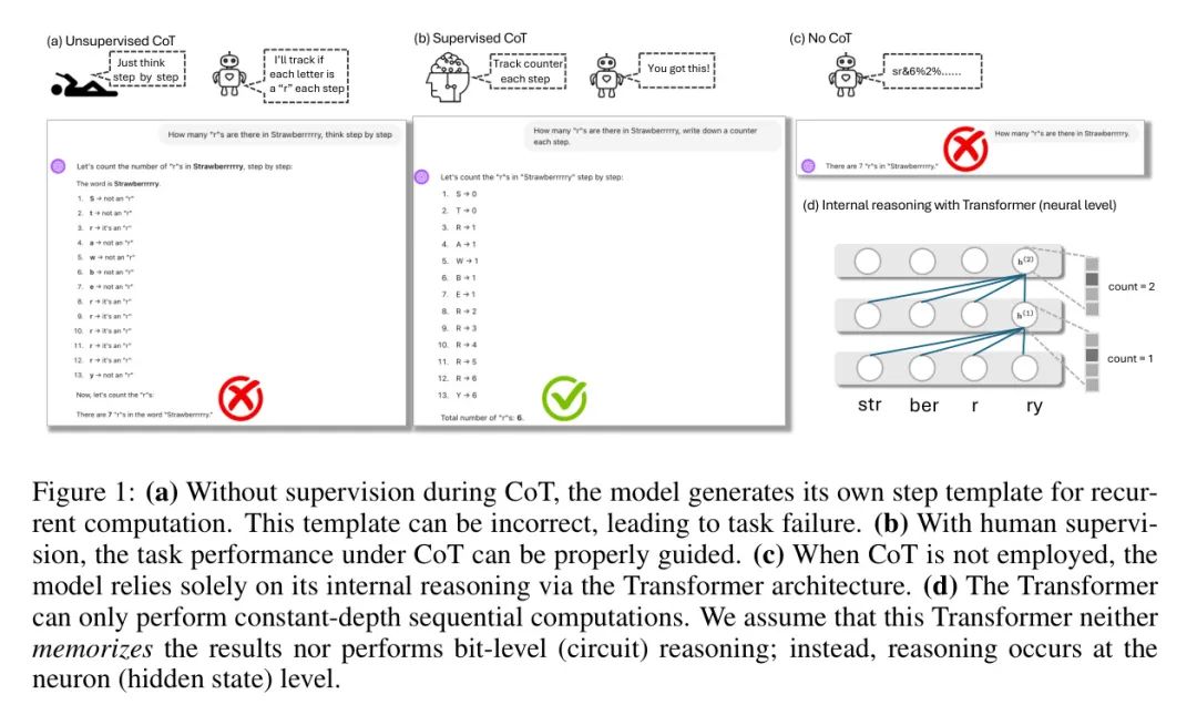 作者的发现结合了理论分析和实验证据,为理解CoT的局限性和改进大型语言模型中的推理任务提供了有价值的洞察。