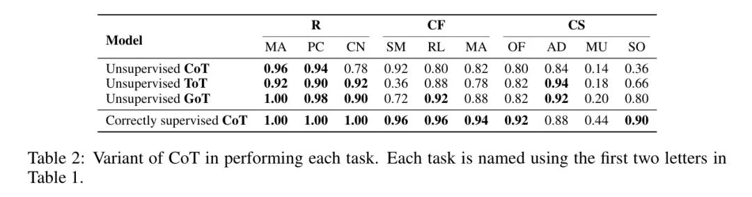 作者的实验目标并非评估不同LLM的推理性能,而是强调在CoT中“监督”所发挥的关键作用。比较各种模型的能力超出了本工作的范围。