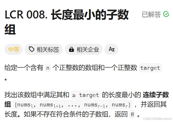 第一题:LCR 008. 长度最小的子数组 - 力扣(LeetCode)