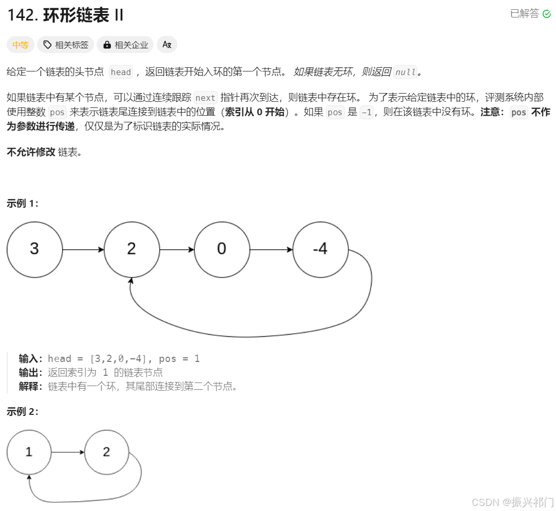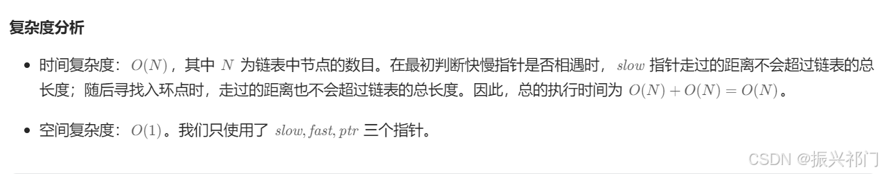 难点不在于判断是否是环形链表。而是返回相交节点。 我们要记住当快指针和慢指针相遇的时候。我们新建一个指针指向头结点。此时我们让头指针和慢指针同时往后走。那么他们一定会相遇。此时我们再返回头结点。