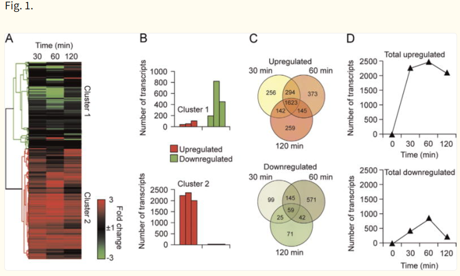 拿到 GSE65031 数据集预处理后的表达矩阵,进行 Mfuzz 分析,并与 文章中的结果进行比较,文献《Whole transcriptome analysis reveals a role for OGG1-initiated DNA repair signaling in airway remodeling》: