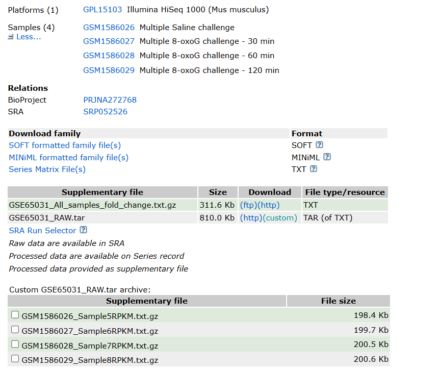 可以看到是个非常古老的测序仪了:GPL15103 Illumina HiSeq 1000 (Mus musculus)