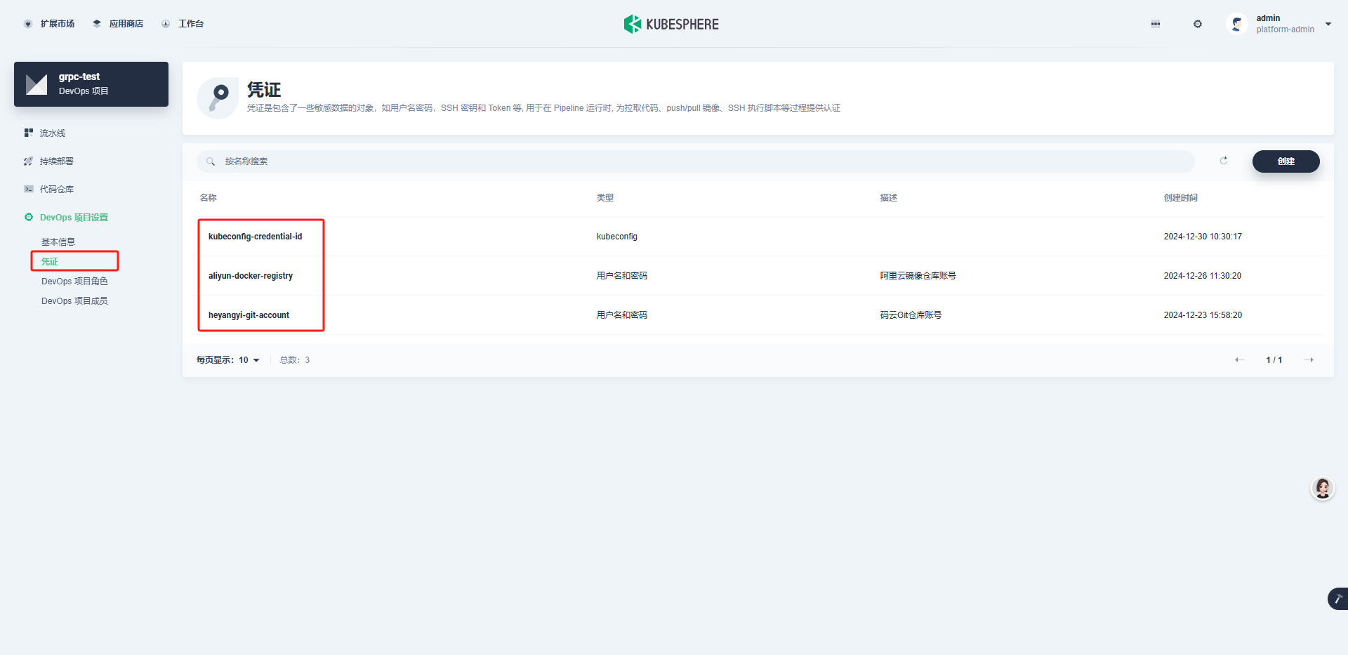 }上面使用的凭证:aliyun-docker-registry、heyangyi-git-account、kubeconfig-credential-id