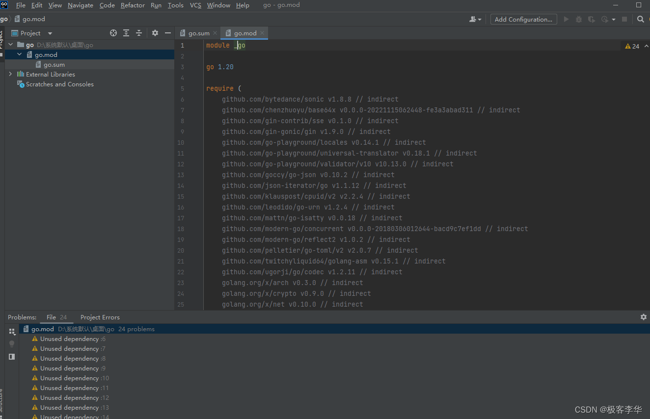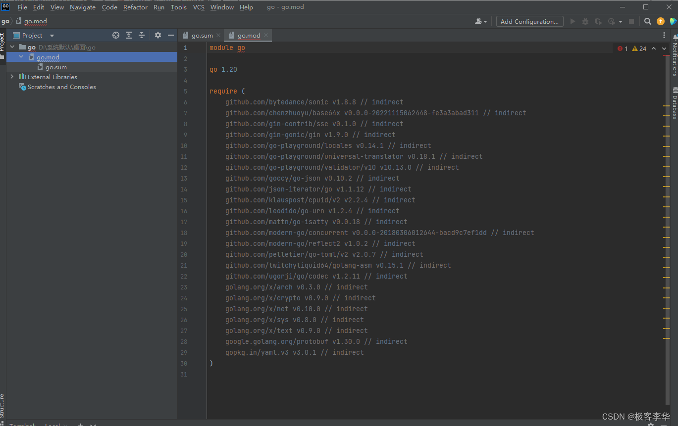 需要注意的是,在go语言里面,不能够把项目的名字命名为go,不然在这个go.mod里面会报错的。