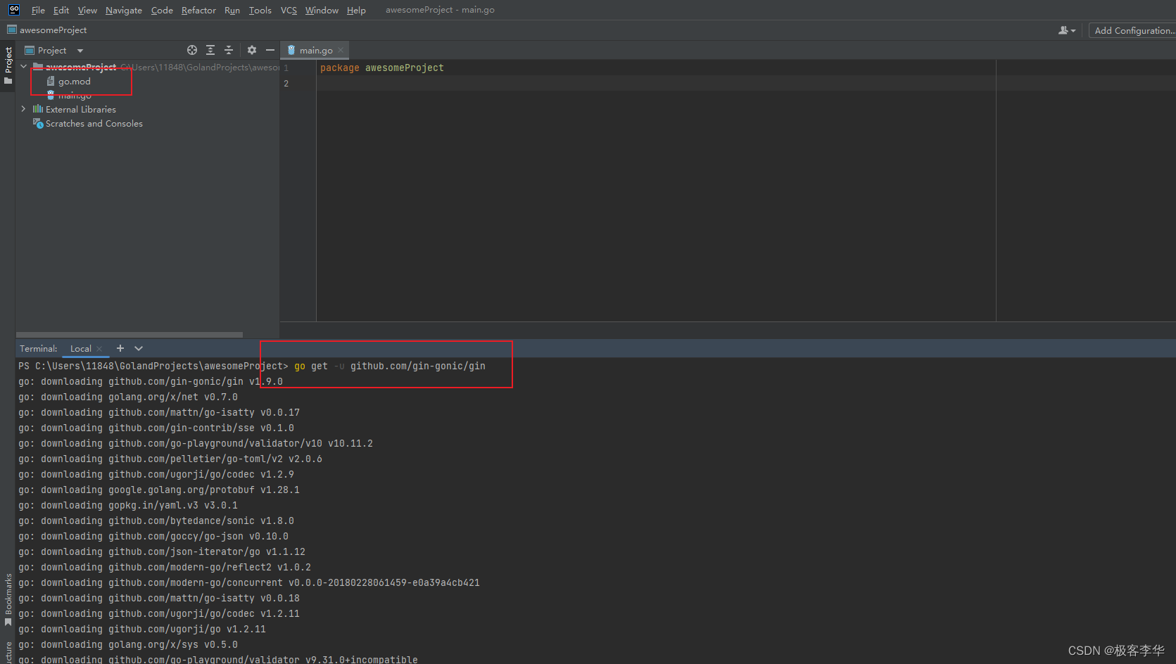 在终端中输入:go get -u github.com/gin-gonic/gin