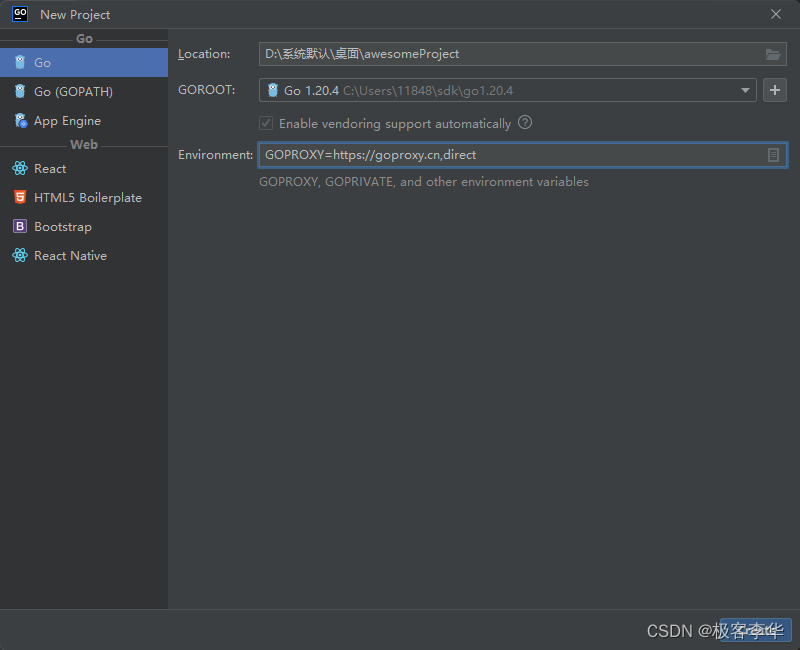 在Environment下面写上:GOPROXY=https://goproxy.cn,direct