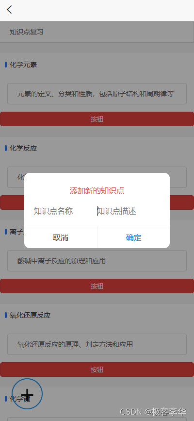 <uni-popup-dialog ref="inputClose" mode="confirm" title="添加新的知识点"