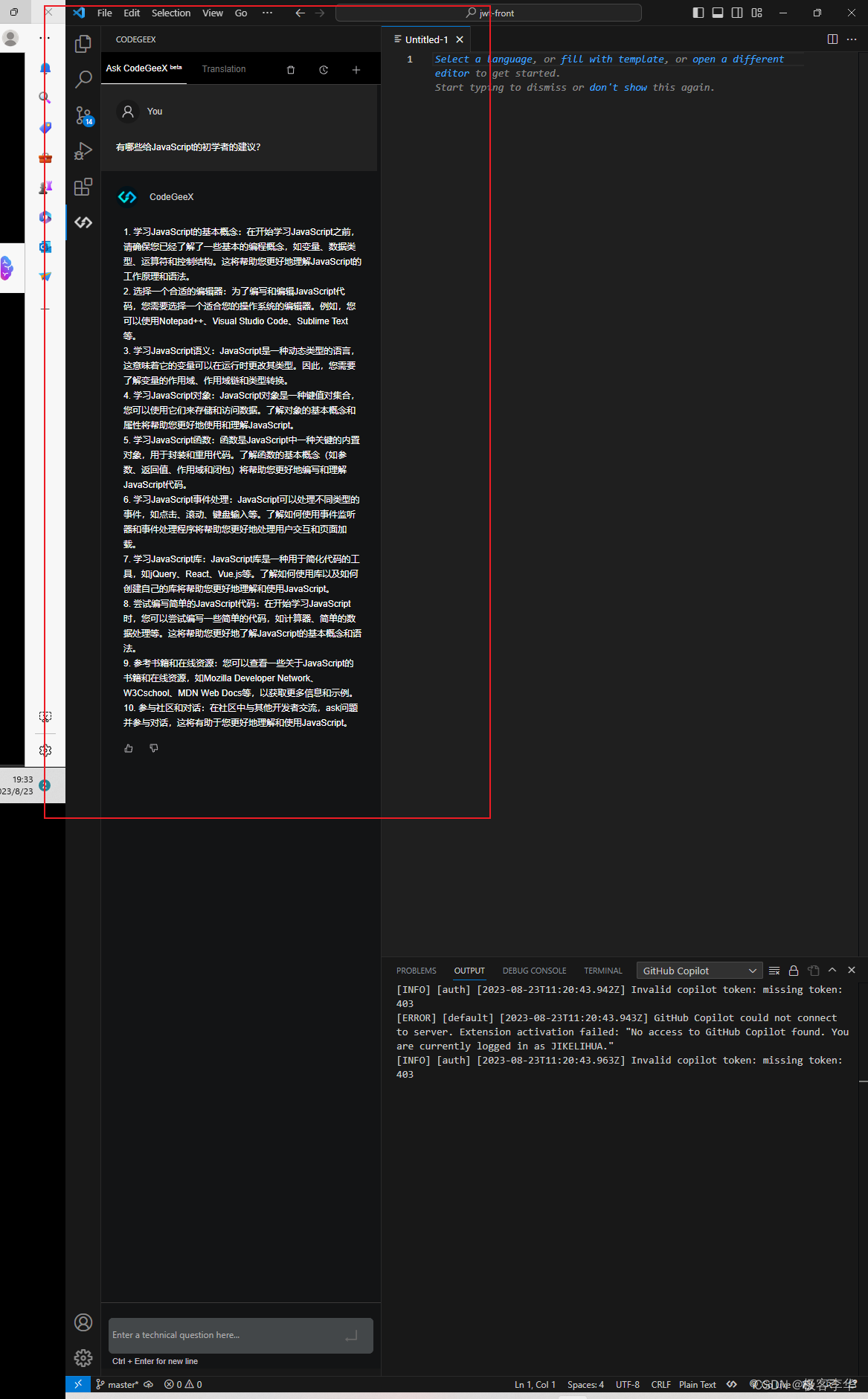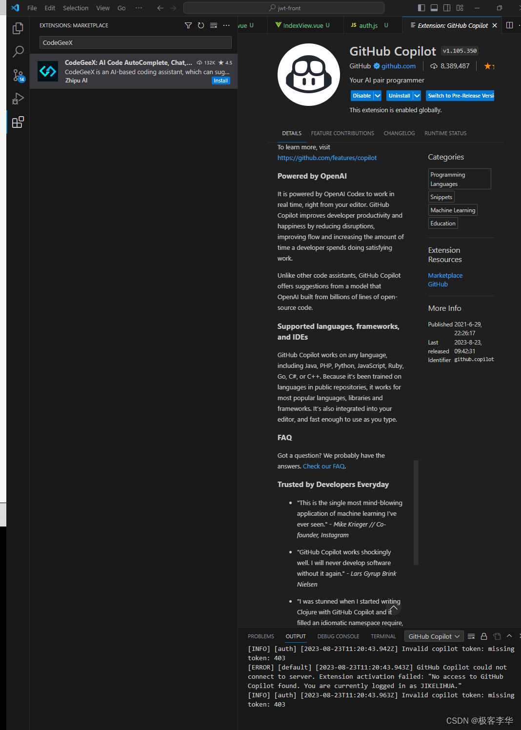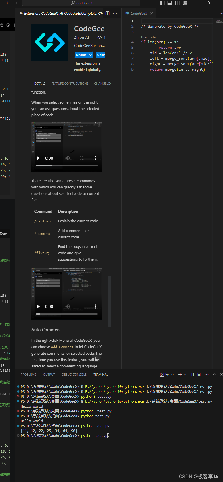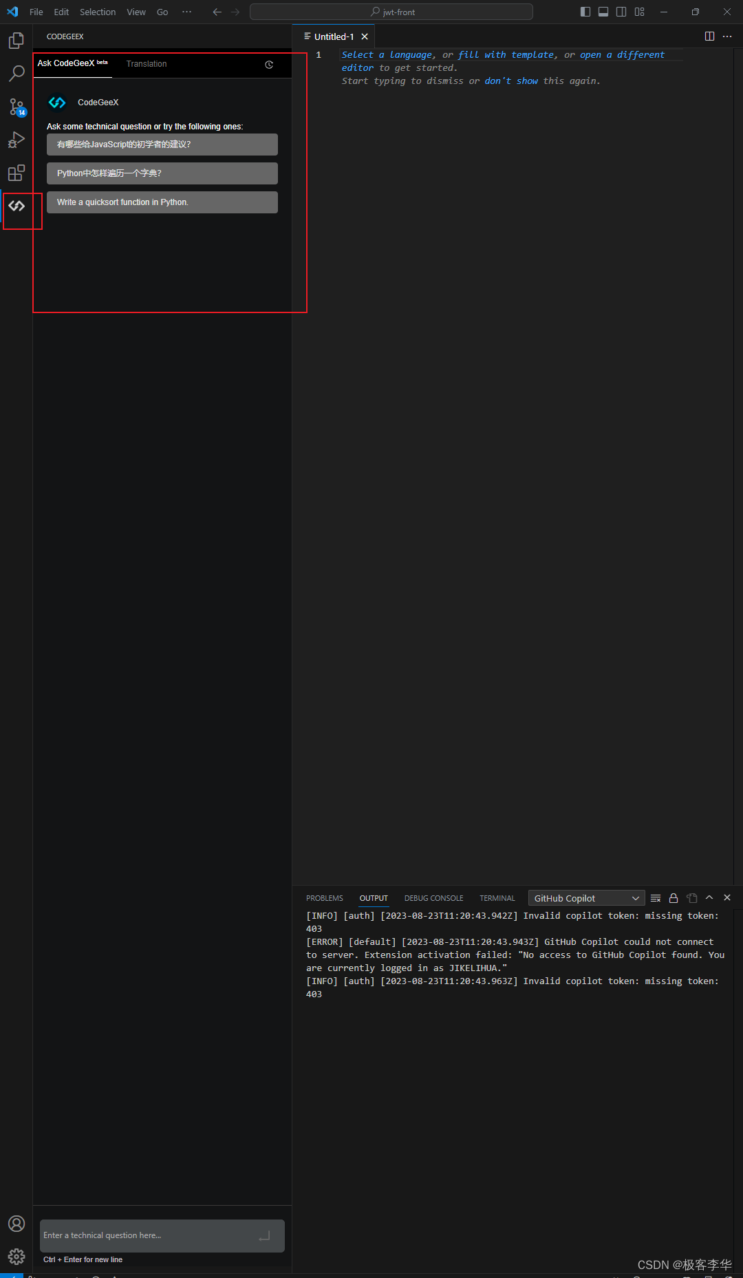 安装好之后就可以看见CodeGeeX相关的图标了