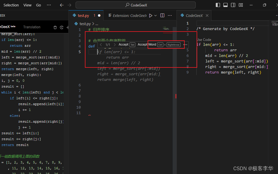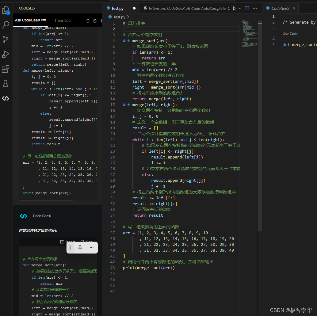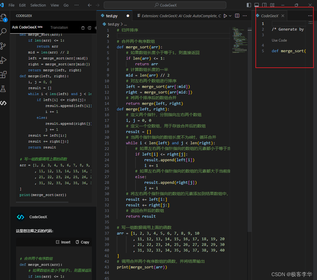 比如归并排序 当我们写完相关的注释之后,然后换行按下Ctrl+Enter
