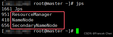 这里采用一键搭建的方式,将HDFS部署完成并启动Hadoop集群(包括hdfs和yarn),使用jps命令查看进程: