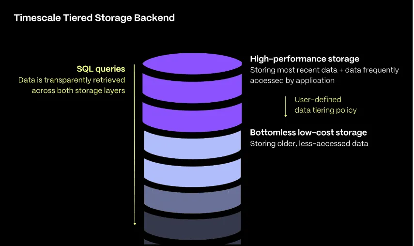最后,我们想谈谈时间序列数据:关系数据库可以无限扩展。为了证明这一点,我们构建了分层存储,这是一种多层存储架构,旨在为Timescale平台上的时间序列和分析数据库实现无限的、低成本的可扩展性。