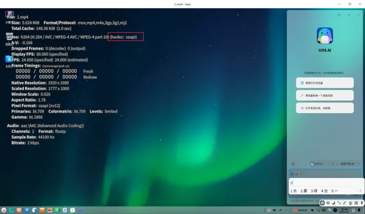 $ mpv --hwdec=vaapi --log-file=mpv.log 1.mp4