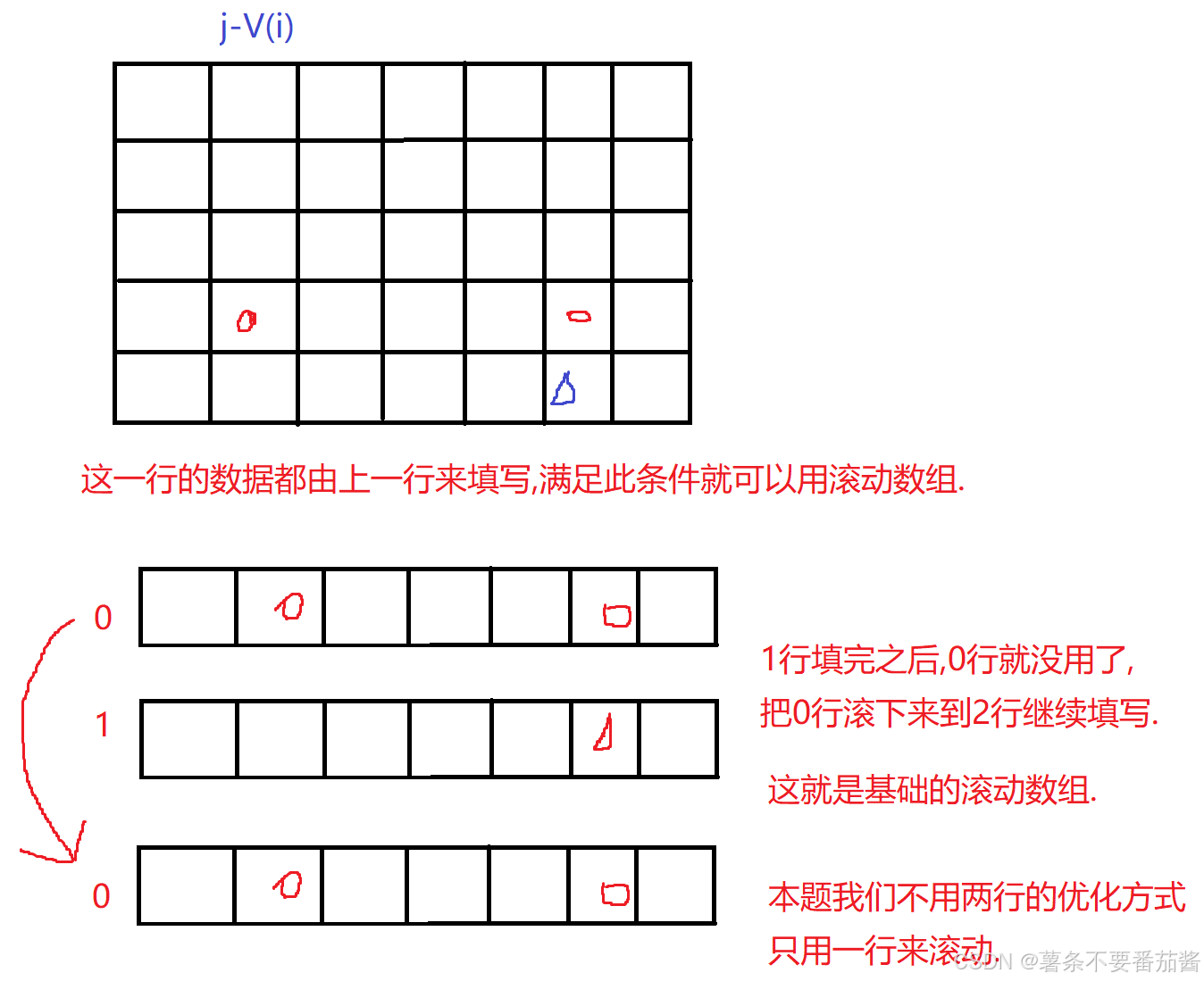 ②直接在原始代码上修改 Ⅰ删除所有的 i 维 (★)Ⅱ 填表时从右往左遍历 j .