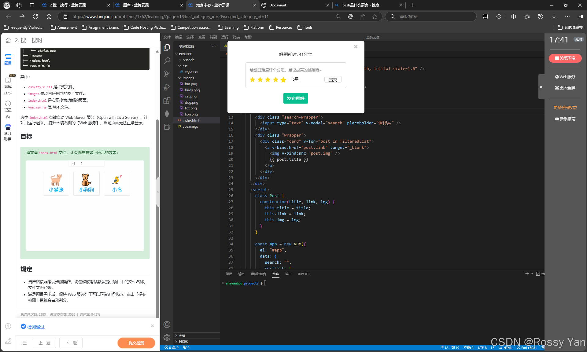 通常网站上会有搜索功能,方便用户定位搜索。本次试题我们要使用 Vue 2 的语法来完成一个关键字匹配的搜索功能。